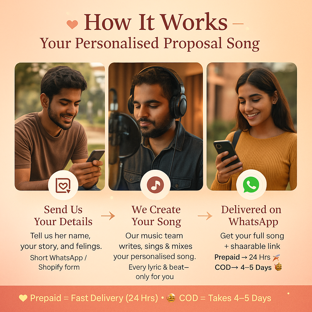Her name in the lyrics. Your story in the song. Delivered in 24 hours (Prepaid). 💬 WhatsApp Support